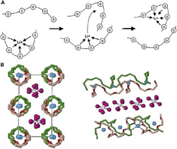 图三、两种用于SPEs的锂离子传导机制的示意图