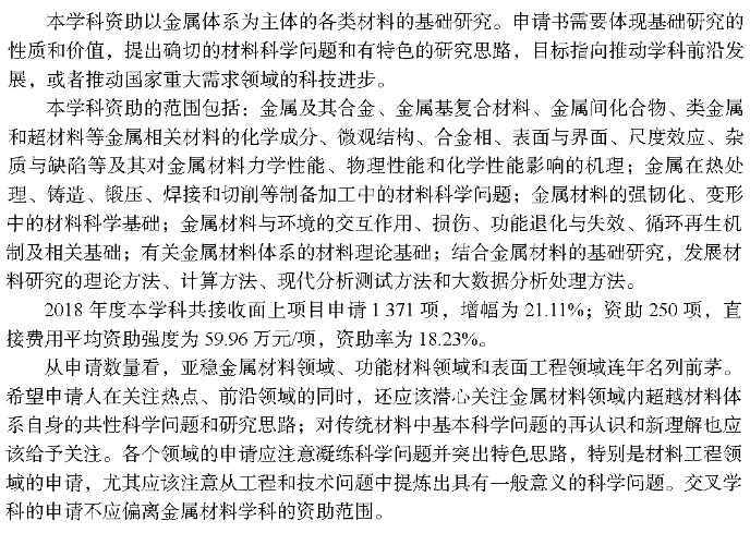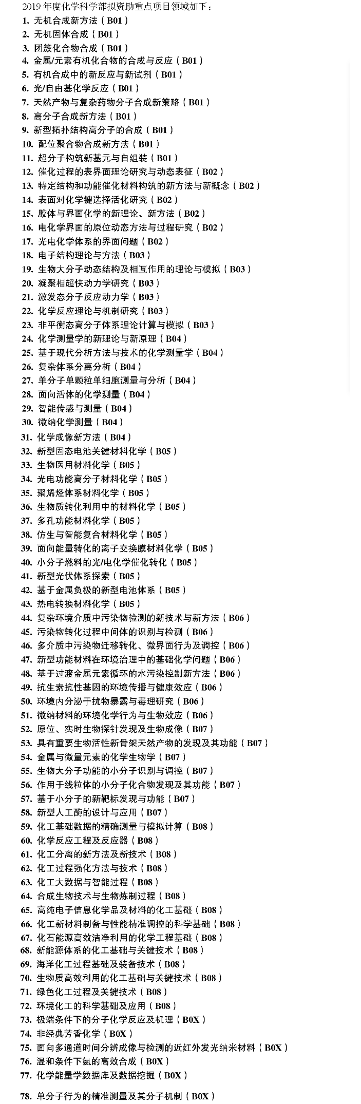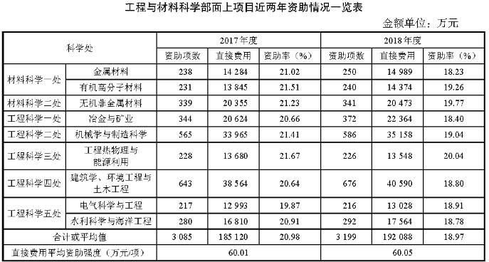 日前,国家自然科学基金委官网以图片形式进行发布《2019年国家自然科学基金项目指南》。材料人整理了化学科学部和工程与材料科学部面上项目、重点项目的情况。