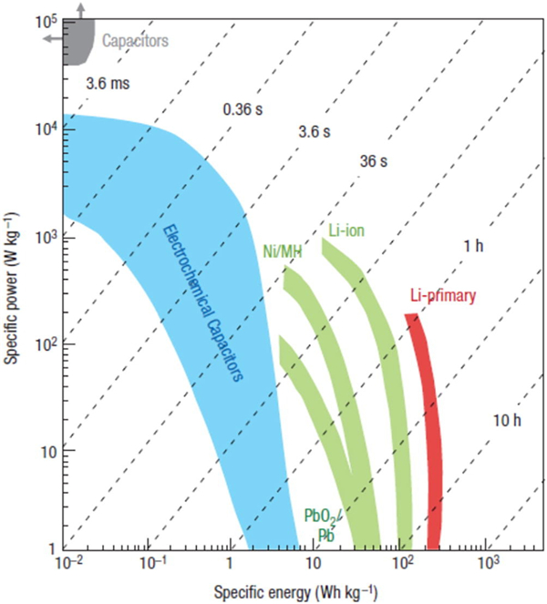 超级电容器是一种可以缓冲风/太阳能源不稳定性的储能装置。超级电容器的比能量(能量密度:ED)和比功率(功率密度:PD)结合了传统电容器和电池的优点。超级电容器和电池的相似性包括:1)在电极/电解质界面处存储能量;2)离子传输和电子传输。电池和超级电容器的差异性自由能:电池是单电子自由能,而超级电容器是连续自由能变化。在电池中,化学反应释放可以被收集到电路;而在超级电容器中,电荷主要以静电方式存储。超级电容器具有功率高、充放电速度快,循环寿命长,成本低廉等一系列优势,其应用前景广阔。但是超级电容器的性能与电极材料密切相关,如何设计和制备出高性能的电极材料,直接决定了超级电容器的性能。本文选取镍基材料为基础,综合分析了镍基材料在超级电容器上的应用。