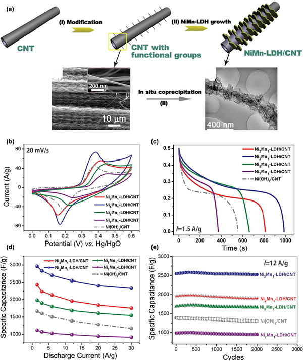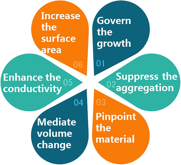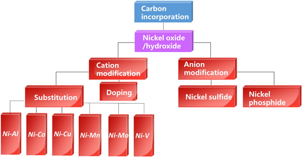 镍基材料的研究路线有许多种,包括分级设计,组合优化和掺杂等,旨在克服限制其应用的问题。虽然已经取得了令人鼓舞的进展,但是镍基材料的电子传导性仍然远离低于碳的电子传导性,阻碍了它们的应用。控制合成参数和实验条件的关键是在分子或原子水平上,设计与合成所需电极材料。