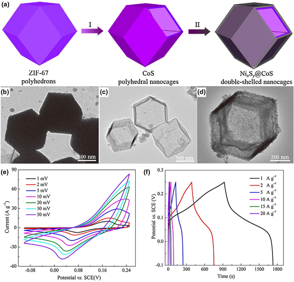 (a)NixSy@CoS双壳纳米笼的形成过程的示意图;