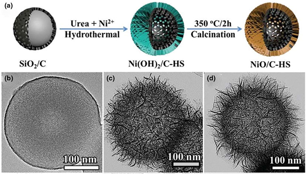 (c)中间体Ni(OH)2/C-HS的TEM图像;