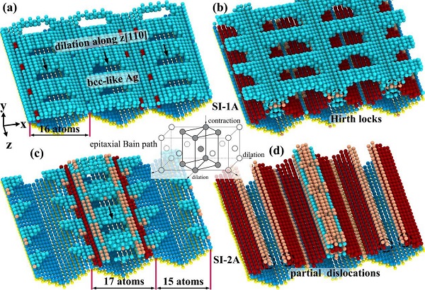 图五:锯齿状Cu{110}//{110}Ag界面的转变诱导塑性的特征