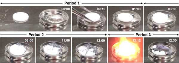 图3. Li1.5Al0.5Ge1.5(PO4)3和熔融金属锂之间的热失控。