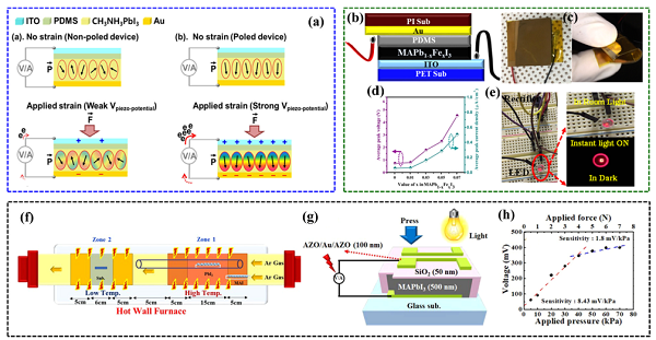 (g)MAPbI3压敏和光敏双峰传感器的示意图;