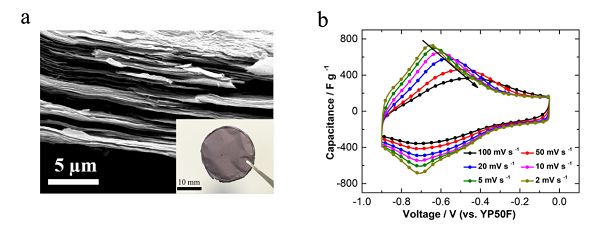 MUSCA测试中最关键的两个参数是电压跃迁阶梯的大小和每个阶梯下的时间。图3a阐述了选取100mV做为电压跃迁阶梯的理由(篇幅原因,具体细节见文章)。图3b给出了通过MUSCA方法计算出的Ti3C2Tx电极在硫酸中CV图,与图1b相比,欧姆降的影响得到了显著的改善。文章详细阐述了欧姆降的来源以及MUSCA减小其影响的原因。