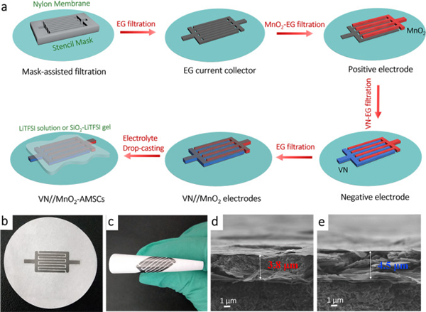 (a)VN//MnO2-AMSCs-GE的示意图;