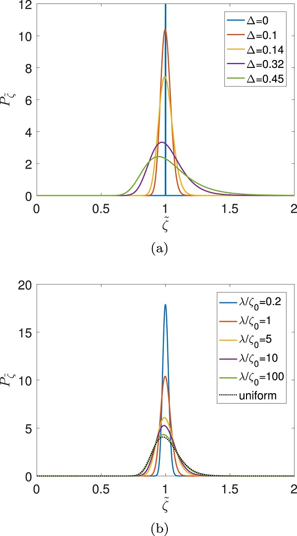 固定Δ,增加λ会扩宽核心宽度ζ ̃分布