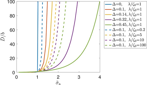 图六 临界应力与标准偏差Δ和相关长度λ的函数
