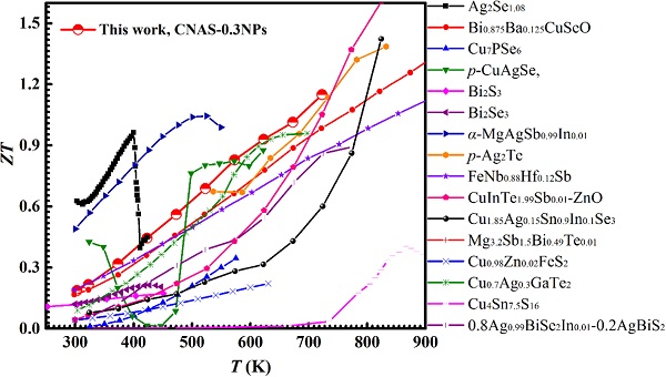 CNAS-0.3NPs复合材料与其他热电材料的性能比较。