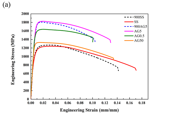 图1 不同显微结构钢的(a)拉伸及(b)冲击性能曲线
