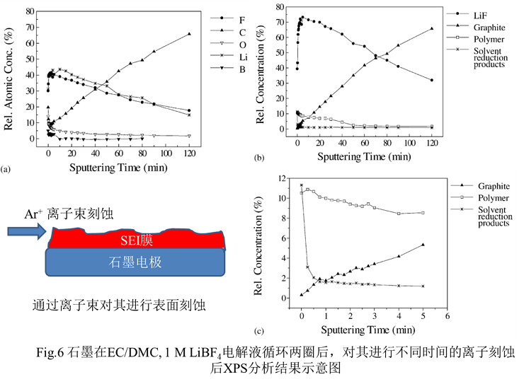SEI膜主要成分为LiF, Li2CO3, Li2O以及醇锂盐和有机聚合物等。其形成过程消耗了大量的Li+,但其形成后起着保护电极的作用,且对Li+传导影响较大,所以SEI膜的研究一直是锂离子电池的热点。