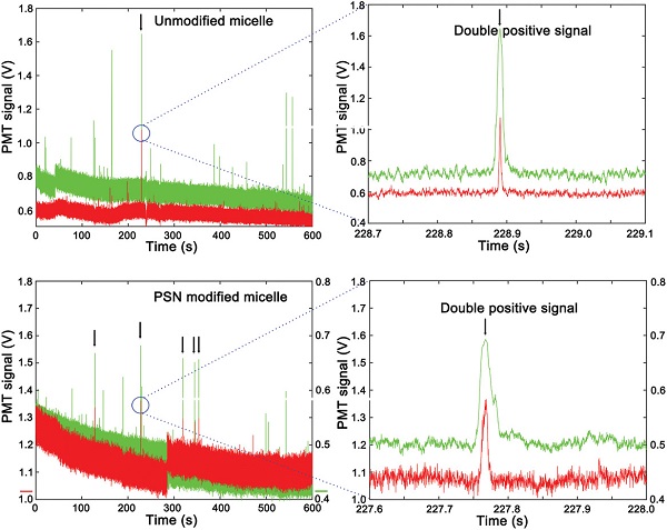 绿色:CTC信号;红色:胶束信号