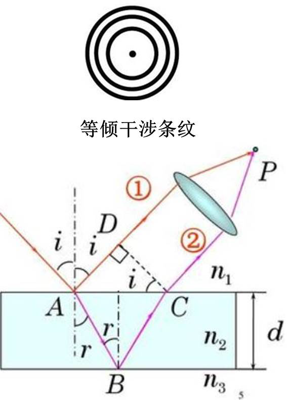 δ=AB+BC-AD+λ/2,其中λ/2为半波损失的附加光程差;
