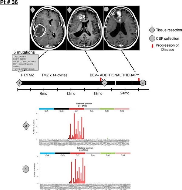 图二、CSF ctDNA记录了胶质瘤基因组的进化