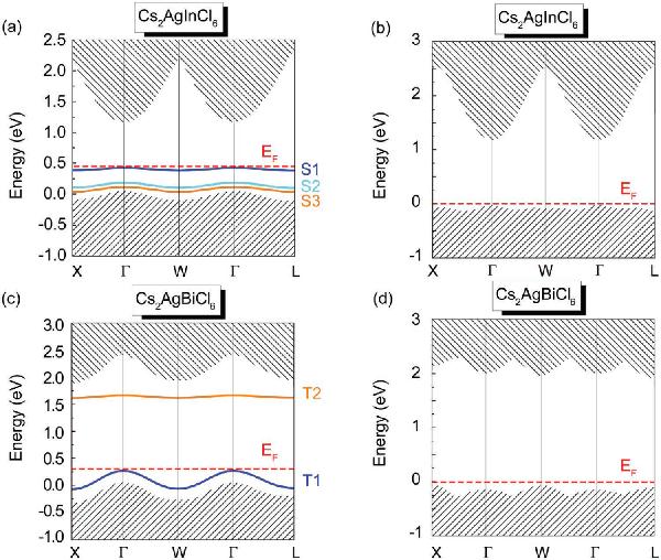 b) InAg + Cli掺入后,具有Σ5(310)GB的Cs2AgInCl6的能带结构;