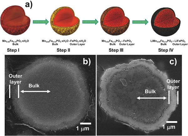 除了LiFePO4和LiMnPO4之外,LiFexMn1-xPO4也是一种很有前途的负极材料。例如Scrosati及其同事通过两步沉淀路线制备碳涂层的核-壳结构的LiMn0.85Fe0.15PO4-LiFePO4,很好的结合了LiMnPO4的高电位和LiFePO4的高稳定性。