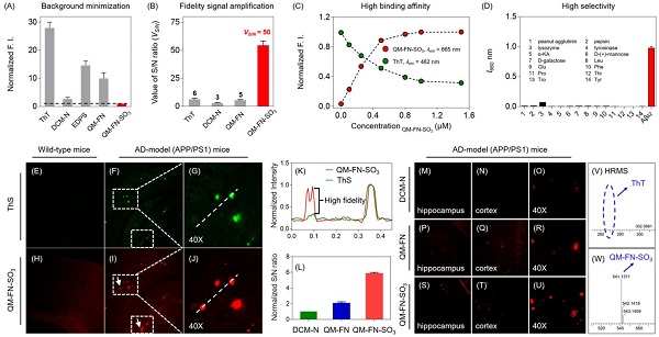 (A-B)QM-FN-SO3的超高S/N比率组合背景最小化和对Aβ42聚集体的保真度信号放大;