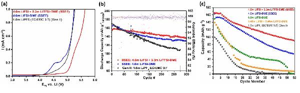 a) 正LSV扫描以测试电解质的阳极稳定性;