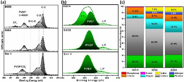 作者通过实验和计算研究了双盐效应对Li金属和高Ni正极材料NMC622的界面化学作用的影响。发现两种阴离子(TFSI–和FSI–)的共存通过优先分解机制引入了全新的界面。受益于双盐效应,镀锂金属采用更致密、更保形的形态,而无负极NMC622电池表明整体锂含量和盐浓度不是BSEE电解质的主要性能促成因素,而是LiFSI、LiTFSI及其还原的阴离子碎片之间仔细观察到的相互作用。此外,基本的安全性分析表明,添加LiTFSI可以为减轻与基于浓缩LiFSI和/或醚溶剂电解质相关的已知安全风险提供途径;然而,上述结果需要在实际的大型电池中进行严格的安全测试,特别是如果预期的体系包括用于实际应用的锂金属。总而言之,综合实验和建模方法的全面研究为负电极和正电极的关键电解质分解反应提供了新的见解。