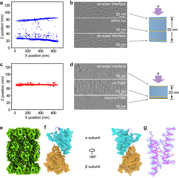 图6: 功能化石墨烯能够将目标蛋白锚定在支撑膜表面,有助于获得近原子分辨率的冷冻电镜三维重构。