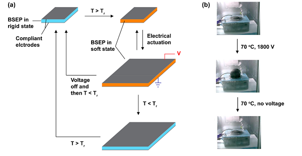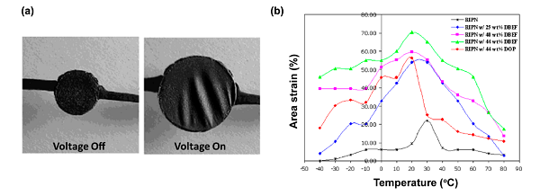 (b)使用玻璃化转变BSEP的隔膜致动器的性能。