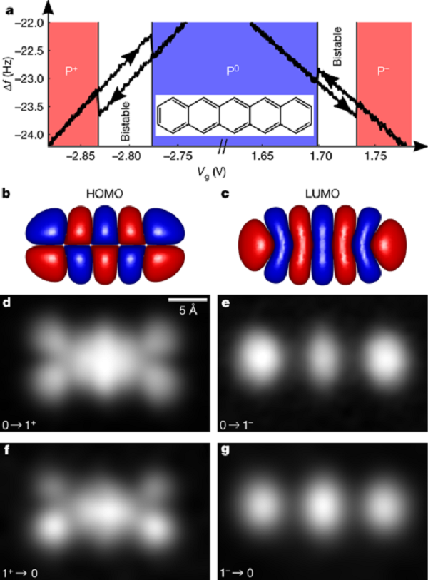 众所周知,电子转移在光合作用、燃烧等许多化学反应中起着至关重要的作用。尽管氧化还原状态的转变改变了所涉及分子的电子结构,但是要在单分子水平上映射这些变化也是非常有挑战性的。如今,随着HTH官网地址 的快速发展,生产出了许多更先进的大型检测仪器。其中,利用扫描隧道显微镜就可以观测单个分子的轨道结构及其相互作用,但是需要使用导电基底以使分子保持在给定的电荷状态,从而抑制其氧化还原状态的转变。虽然原子力显微镜可用于绝缘体上,以获得结构和静电信息,但是通常不能获得电子状态。因此,观测绝缘体上电子转移时的轨道变化是具有挑战性的工作。