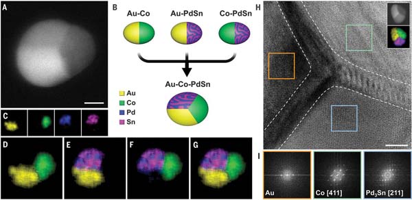 由多相纳米颗粒(NPs)中的相界形成的界面不仅在结构上定义了纳米颗粒,而且引入了内部结构的不连续,促进了邻域之间的电子相互作用。例如,发生在NP界面上的电荷转移可以用来调节等离子体和催化性质。此外,当邻近外延相时,应变工程可以调制材料的电子结构,两个域之间的界面可能含有丰富的高能缺陷,可以增强催化作用。最后,具有多个界面的单个NP可以表现出由单个组分组成的粒子所不具有的集体特性(就组成和界面的数量和类型而言)。随着多相、多元素NPs向更大的成分多样性和结构复杂性发展,理解如何在一个粒子中建立特定类型的界面对于设计新的功能性纳米结构至关重要。虽然现在可以通过多种途径合成多元素纳米颗粒,但是如何在这些结构中形成热力学相,以及如何设计和合成它们之间的特定界面,仍然知之甚少。