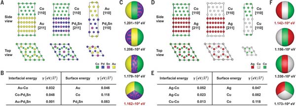 图2 Au-Co-Pd3Sn和Ag-Cu-Co三相NPs结构的DFT模拟计算