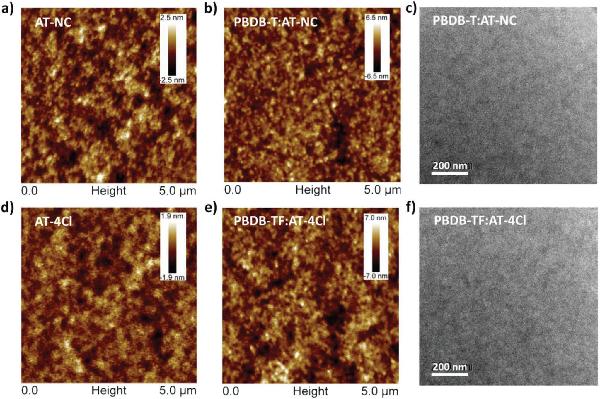 e,f) PBDB-TF:AT-4Cl膜的AFM和TEM图像。