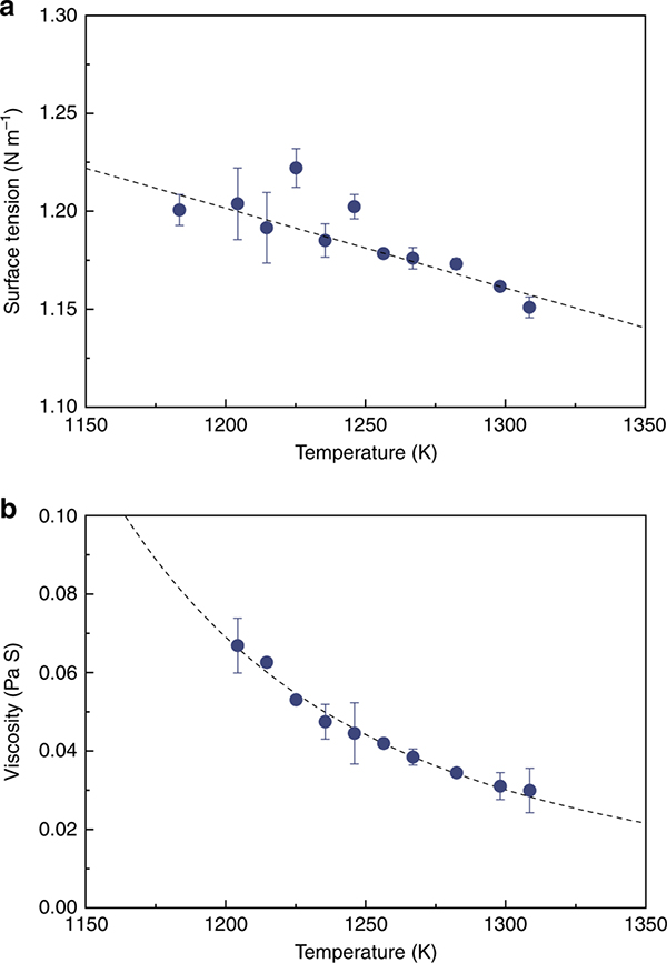 (a) Zr46Cu30.14Ag8.36Al8Be7.5 块状金属玻璃形成的合金熔体的表面张力;