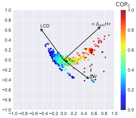 图四.MOFs结构特征、吸附性能与热泵性能之间的主成分分析