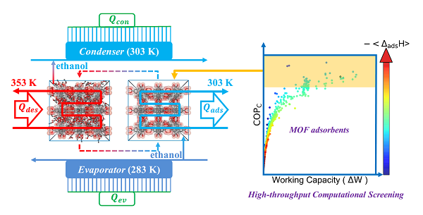 图一. 基于金属有机骨架-乙醇工质对的吸附式热泵制冷性能的高通量计算筛选