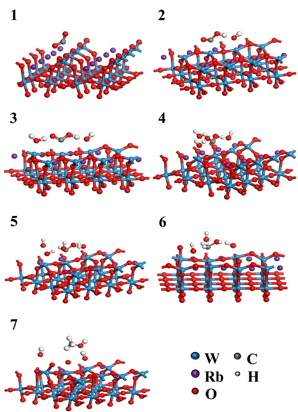 图2 DFT计算模拟的Rb0.33WO3光催化还原CO2反应步骤示意图