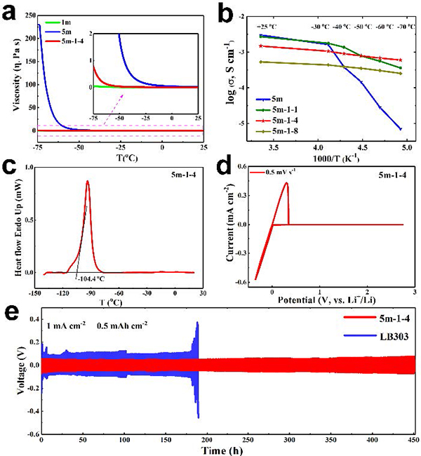 (c)5m-1-4共溶剂电解液的DSC曲线