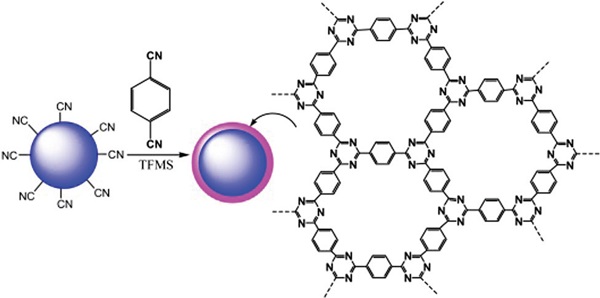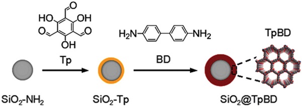 Figure 11.用于HPLC的TpBD@SiO2微球的合成示意图
