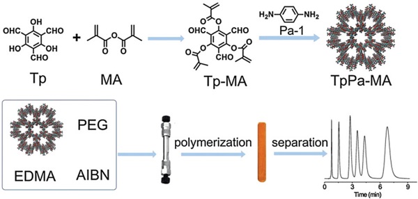 Figure 13.制备用于HPLC的聚(TpPa-MA-co-EDMA)整体柱示意图