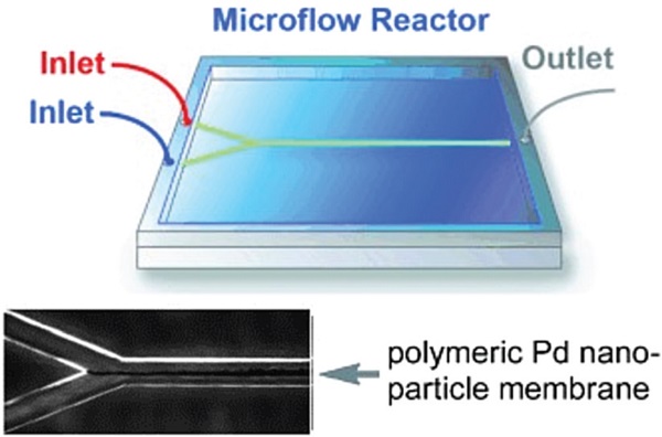 Figure 28.聚合物钯纳米颗粒膜组装的微反应器,和微反应器中催化膜的表征