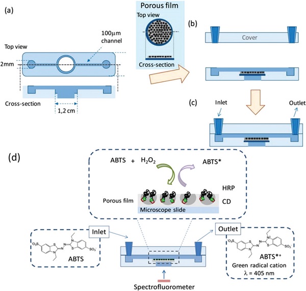 (b).将多孔膜放在微芯片中央