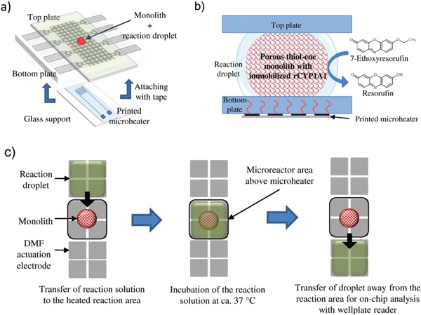 (c).设备上酶孵育期间的液滴驱动流程