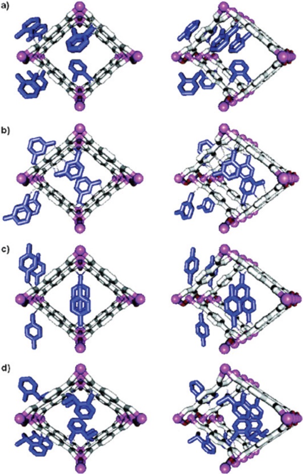 Figure 9.MIL-53ht及烷基芳族异构物客体的晶体结构