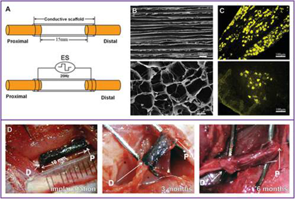 (A)冷冻干燥的PPy/壳聚糖构建用于桥接具有或不具有间歇性ES的大鼠坐骨神经缺损;