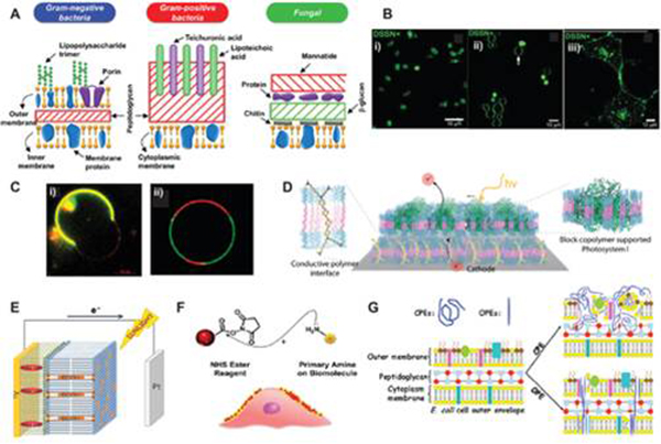 (B)已结合在生物膜内的主要CPE和COE类型的示意图;