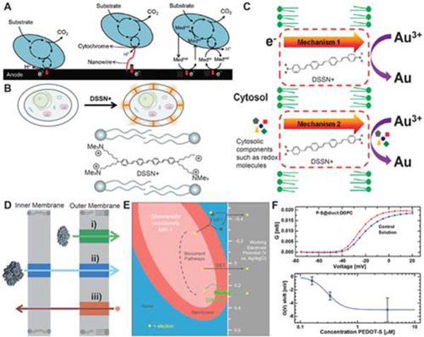 (C)DSSN+插入大肠杆菌生物膜,导致直接电子转移(i)或膜渗透(ii)。后一种机制导致HAuCl4转化为Au纳米粒子;