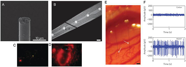 图三、用于超小型可植入神经探头的包覆PEDOT:PSS碳纤维