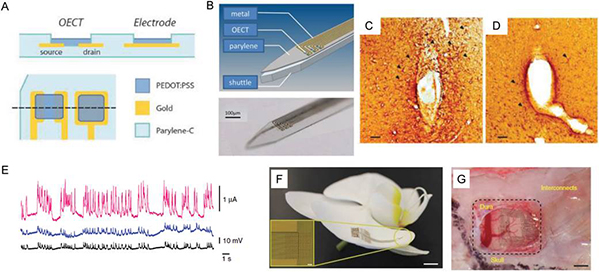 (A)通过光刻微加工神经探针。记录位置在OECT或电极配置结构里;