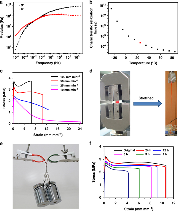 (a) Zn(Hbimcp)2-PDMS聚合物在25°C下的时间-温度叠加曲线;