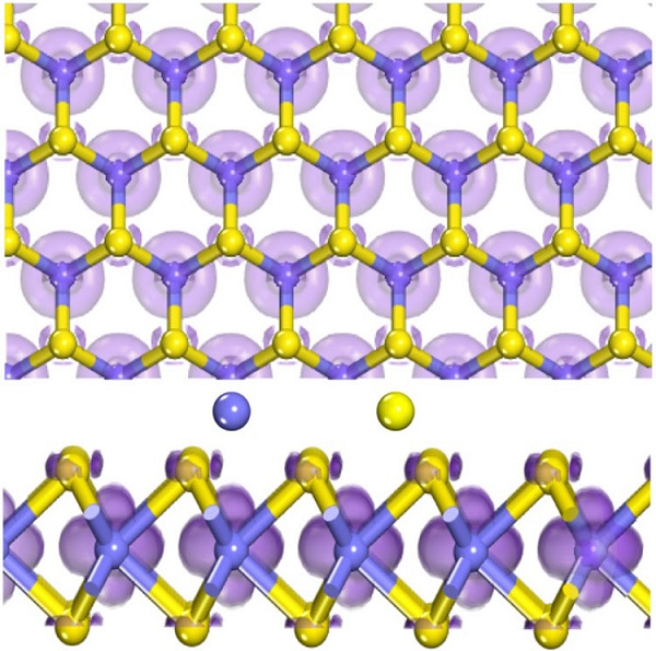 MoS2中导带底的俯视(上)和侧视(下)轨道组成。
