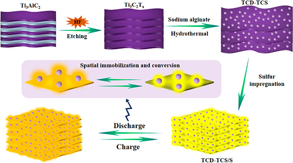 本文开发了基于MXene的TCD-TCS,硫可以紧密地粘附在TCD-TCS的表面上,形成紧密堆积的结构。高密度超细TCD在TCS表面上的均匀散布大大降低了它们的界面阻力,并促进了硫的氧化还原动力学,即使在高电流密度和高硫负载下也能实现硫的高利用率。使用基于MXene的材料实现了高面积容量和超高体积容量的同步增加。