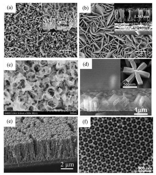 图二、各种纳米结构WO3阵列的扫描电子显微镜(SEM)图像